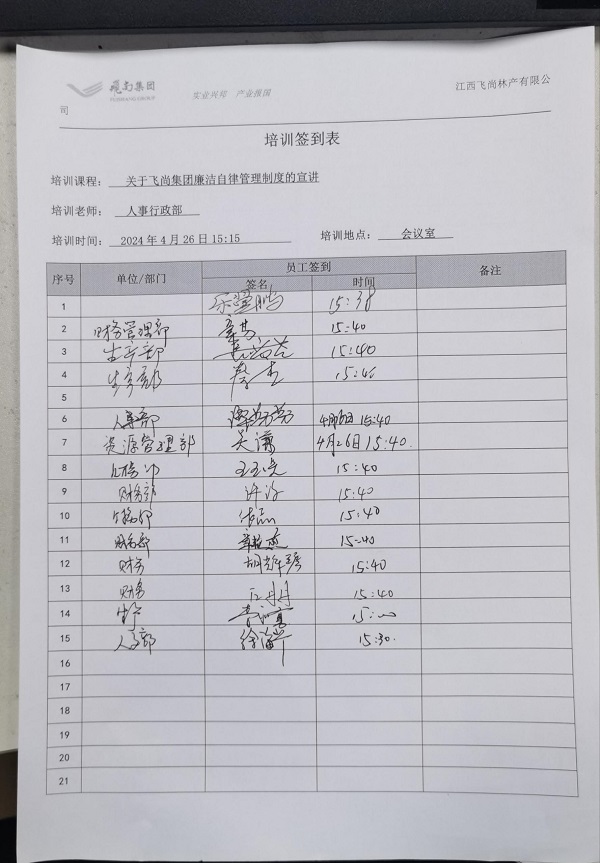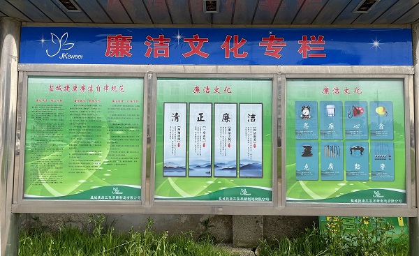 《飛尚集團(tuán)廉潔自律管理制度》發(fā)布后,各成員企業(yè)相繼出臺(tái)本企業(yè)廉潔自律管理制度和各項(xiàng)管理規(guī)定,并通過(guò)微信工作群廣泛宣傳,不斷健全員工參與機(jī)制,充分發(fā)揮員工的積極性、創(chuàng)造性,夯實(shí)廉潔文化建設(shè)的群眾基礎(chǔ)。江西飛尚林產(chǎn)有限公司通過(guò)座談會(huì)進(jìn)行深入宣貫,鹽城捷康三氯蔗糖制造有限公司打造了廉潔文化長(zhǎng)廊,拓寬了宣貫渠道和方式。