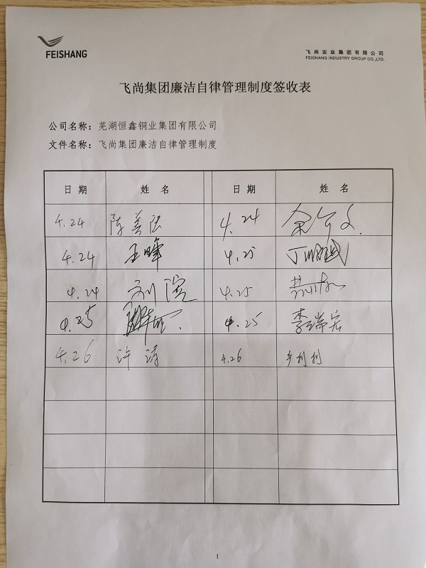 各級(jí)領(lǐng)導(dǎo)干部既是廉潔文化建設(shè)的參與者,更是廉潔文化建設(shè)的組織者、倡導(dǎo)者、示范者。為充分發(fā)揮領(lǐng)導(dǎo)干部的示范帶頭作用和導(dǎo)向作用,重視并支持廉潔文化建設(shè),各成員企業(yè)首先加強(qiáng)對(duì)領(lǐng)導(dǎo)干部的宣傳教育力度,通過(guò)《簽收表》確認(rèn)集團(tuán)和本企業(yè)兩份《廉潔自律管理制度》發(fā)放到每一位行政工作人員、班組及以上管理人員,并督促學(xué)習(xí)貫徹。